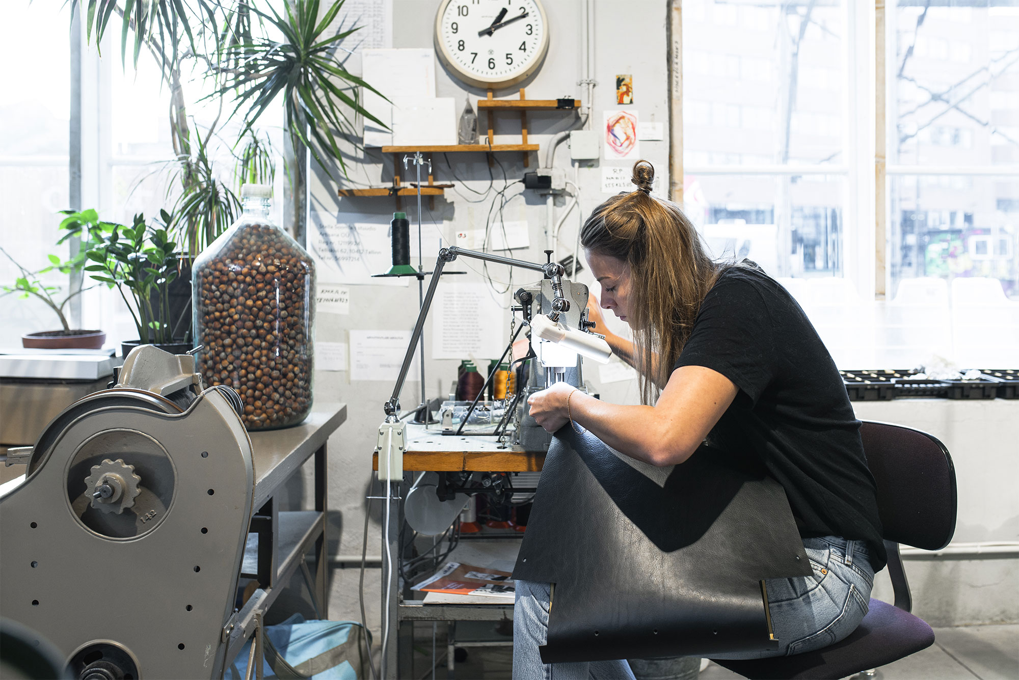 Stella Soomlais is a leather bags & accessories designer from Tallinn, Estonia. In 2004 she began to tailor unique bags for customers with specific requests. Over the years the company has grown into a brand that produces a collection of weekend bags, backpacks, handbags, wallets and other small accessories with a circular design system. Since 2015 Stella Soomlais runs as a brand whose aim is to prove that managing a leather studio in a sustainable way is possible, aiming to be a zero waste leather bag workshop by the year 2025 and eventually becoming climate positive in the coming years.